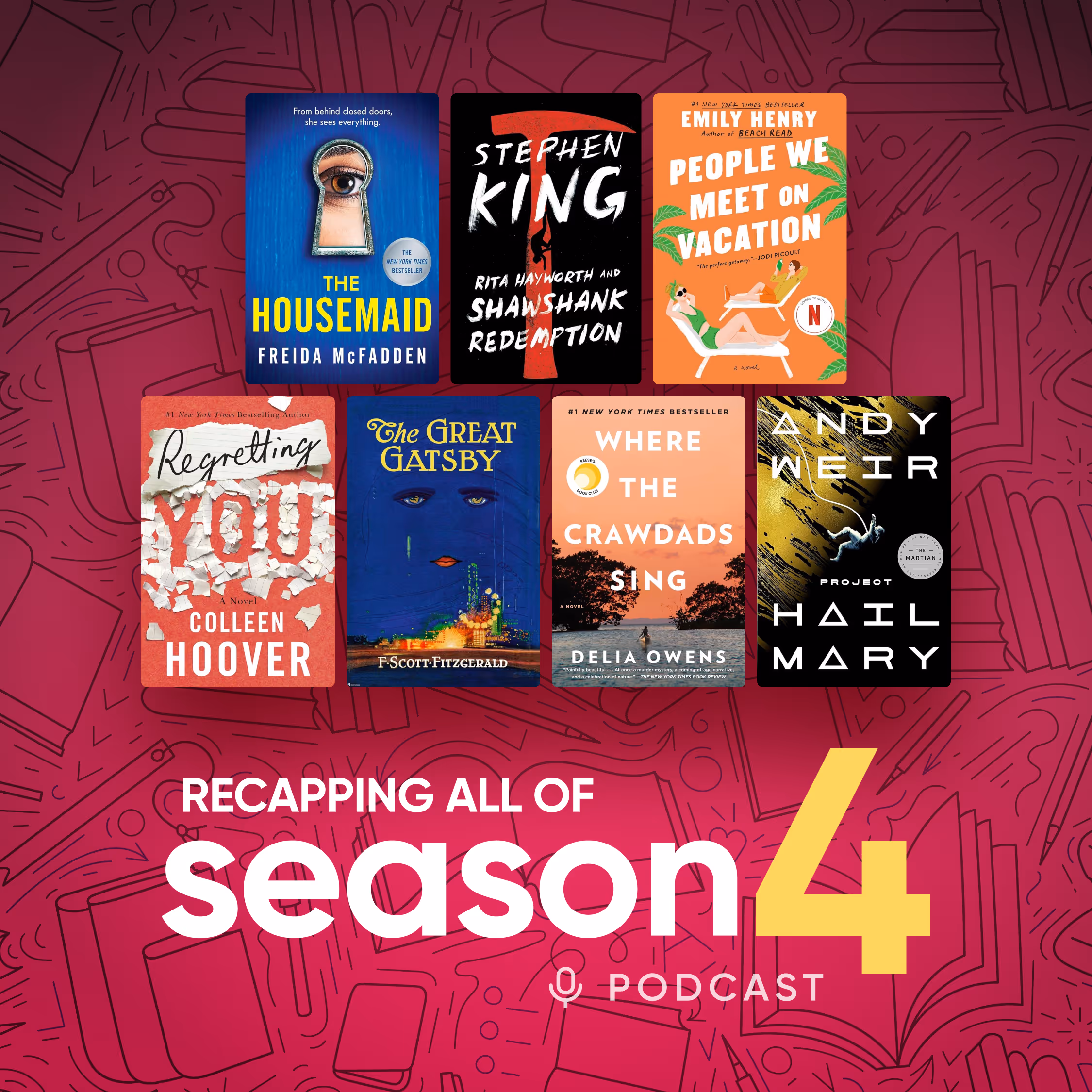 podcast, books, book reviews, book analysis, book review, novel, adult, adult fiction, fiction, romance, romcom, new age romance, modern romance, tropes, mystery, thriller, podcasts, podcast, book reviewers, historical fiction, fantasy, romantasy, science fiction, dragons, book to film, ryan gosling, project hail mary, the housemaid, gatsby, emily henry, stephen king, andy weir, colleen hoover